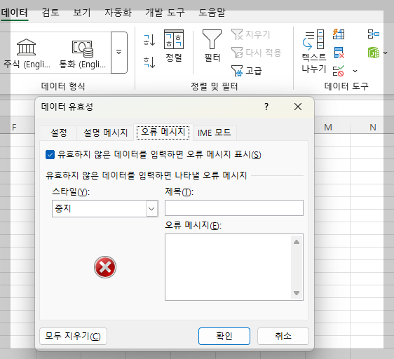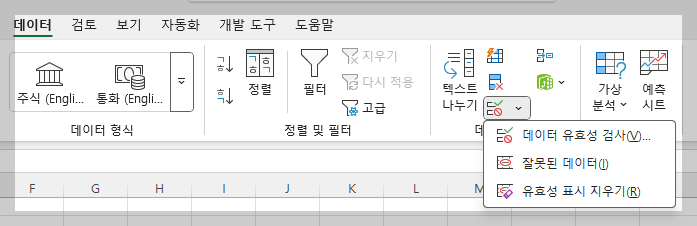 - [데이터] 탭 → [데이터 유효성 검사] 클릭