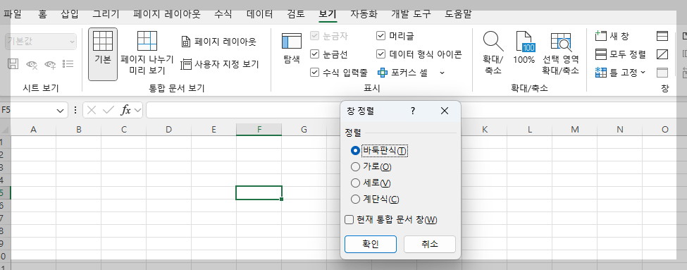 엑셀은 열린 창들을 자동으로 정렬해주는 편리한 기능을 제공합니다.