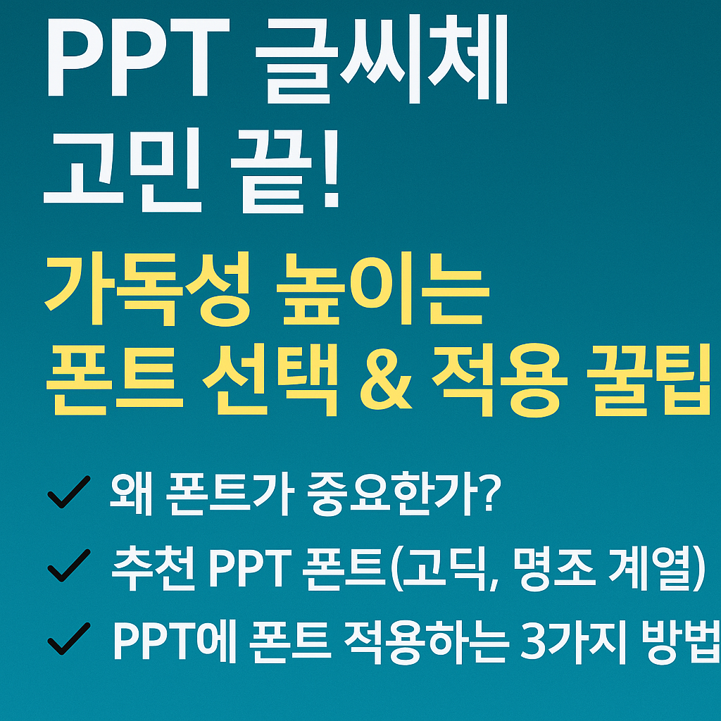 이 글에서는 가독성 높은 폰트를 고르는 방법부터 PPT 전체에 적용하는 팁, 폰트 깨짐 방지까지 꼭 알아야 할 실전 노하우를 소개합니다.