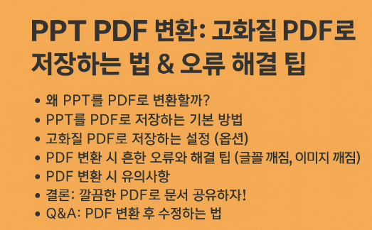 PPT PDF 변환은 누구나 쉽게 할 수 있지만, 고화질로 저장하고 오류 없이 문서를 공유하려면 몇 가지 세팅이 필요합니다.